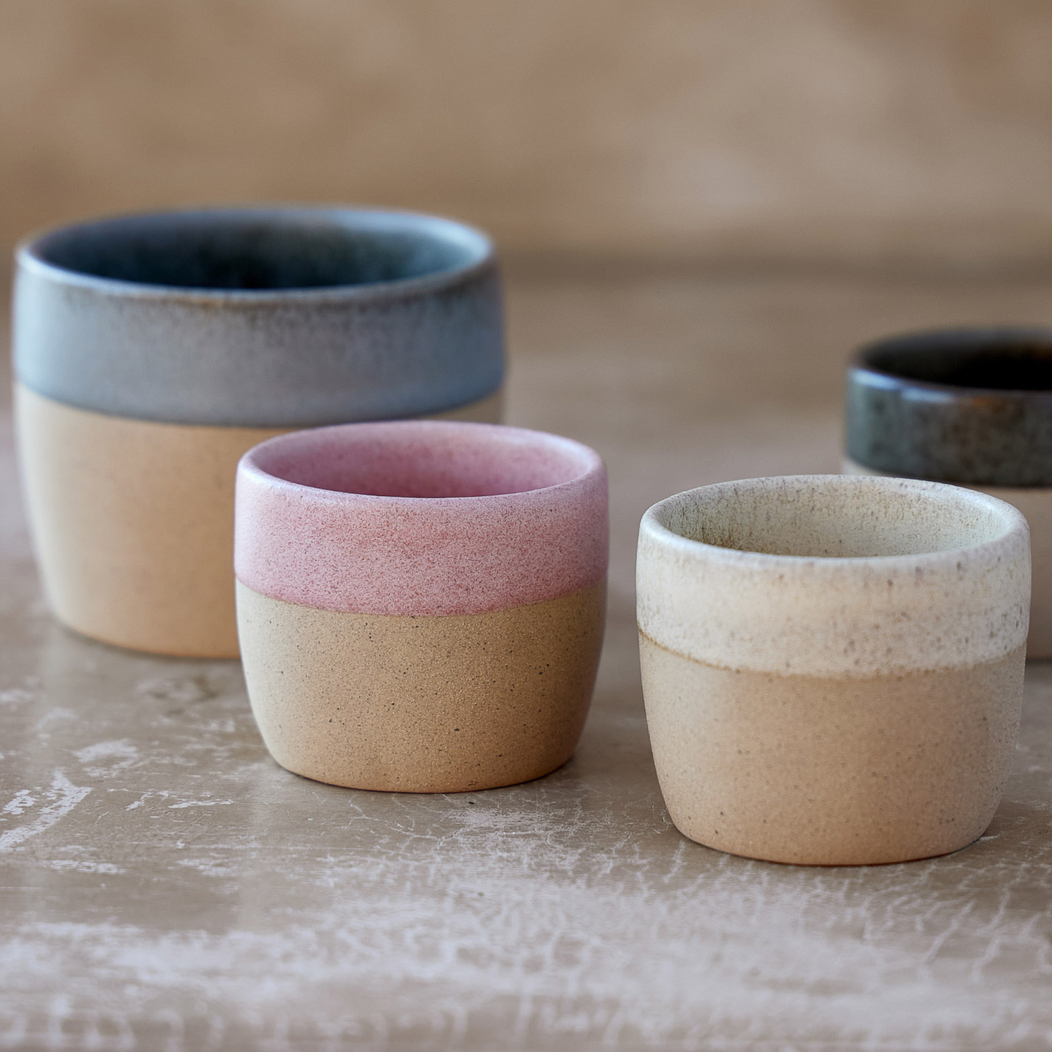 Unsere handgefertigten Becher aus nachhaltigem Ecogres vereinen Qualität, Design und Keramikkunst. Perfekt für Matcha.